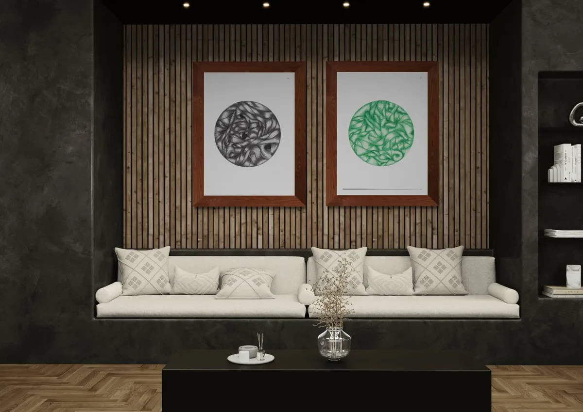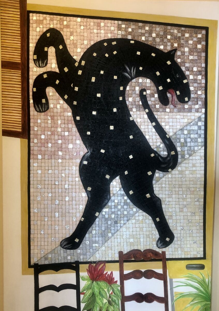 Black Panther on oil painting, mosaic panel design in la Provençale Café.