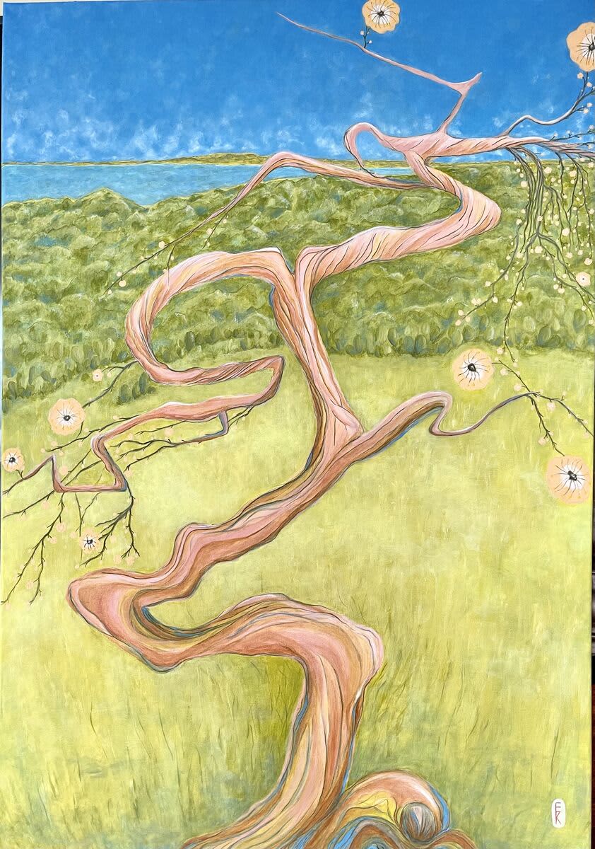 Oil on canvas in a black wooden frame. One of my earlier series of Japanese style paintings. The sakura is in white and red flower blossom and falling petals in the same time over the Temple. The passing and the permanent things in our present life, the beautiful moment of contemplation.